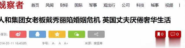 据戴秀丽的丈夫透露,在离婚的时候戴秀丽的身家已经达到了12亿英镑,换算成人民币竟然达到123亿左右,如此庞大的身家居然还是没能留住丈夫的心。