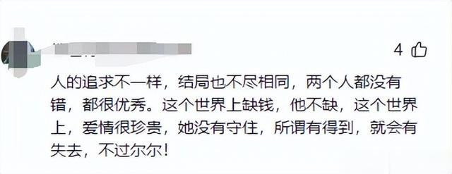 另一位网友其实说出了事情的真正本质,两个人的价值观不同肯定会产生的一定的分歧,所以说两个人都没有错,都很有序,爱情对一个人来说是弥足珍贵的,即使现在戴秀丽亿万身家,可是已经没有当年 的那份纯真的爱情了。